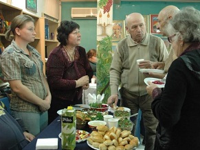 В целом встреча прошла, как обычно, в отличном настроении, общинном духе. Все остались довольны. Волонтеры получили доплонительный стимул приходить в Хэсэд почаще. В проекте встретились участники нескольких клубов: Галины Липкер и Сары Доценко. С удовольствием общались друг с другом, пробовали вкусные блюда, делились кулинарным опытом. Праздничное настроение создал и совпавший по дате день рожденья любимого всеми Аркадия Рафаиловича Плоткина. Подарки от общины всем понравились. Осталось ожидание следующей встречи и новой темы конкурсного тура.